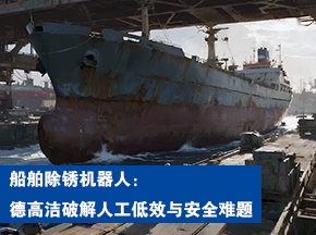 船舶除銹是修船關(guān)鍵,傳統(tǒng)人工存在高空風(fēng)險(xiǎn)、效率低、污染及質(zhì)量不均等問(wèn)題。德高潔超高壓水船舶除銹爬壁機(jī)器人,集成超高壓水除銹、真空固液分離等系統(tǒng),地面遙控作業(yè),免高空人工。除銹無(wú)粉塵,廢污同步回收分離,廢水可循環(huán),等級(jí)達(dá) SA2.5,遠(yuǎn)超人工,適配巨輪除銹需求。[查看詳情]