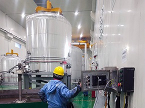 德高潔從發(fā)酵罐清洗實際情況出發(fā),對發(fā)酵罐現(xiàn)有自動化清洗方式進行了改進,自主研發(fā)并投入使用了一款高壓水發(fā)酵罐自動清洗系統(tǒng),360°高壓水自動清洗,以機械自動化清洗技術(shù)代替人工清洗,在保障有效清洗質(zhì)量的條件下,降低清洗勞動強度、提高發(fā)酵罐清洗效率,大大縮短了清洗時間。[查看詳情]