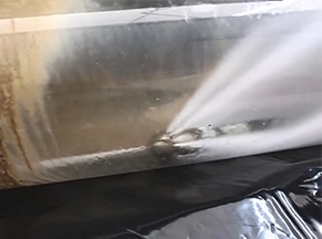 高壓水清洗裝置是利用高壓泵產(chǎn)生的水壓力,直接沖擊軋輥表面上附著的鋅層,水對(duì)鋅層滲透、剪切、壓縮、破碎,并引起裂紋擴(kuò)散和水楔作用,造成大量裂縫擴(kuò)散,從而將軋輥表面污垢清除掉。[查看詳情]
