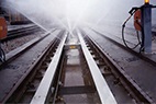 高速動(dòng)車組列車在高速行駛中帶起的雪花結(jié)成了冰,附著在列車地盤上,這些冰層會(huì)影響機(jī)械師對(duì)列車地盤的檢查,對(duì)行車安全帶來(lái)隱患。因此在檢修前,機(jī)械師們先要把列車地盤和輪軸上的冰清除干凈。這些冰大多聚集在地盤零件的空隙里,凍的非常結(jié)實(shí),要想把它們處理干凈,傳統(tǒng)的方法是用特制的工具,一點(diǎn)點(diǎn)往下鏟。為此,北京德高潔清潔設(shè)備有限公司組織技術(shù)力量,研發(fā)了一款全自動(dòng)高速動(dòng)車組列車底盤、輪軸除冰系統(tǒng)。