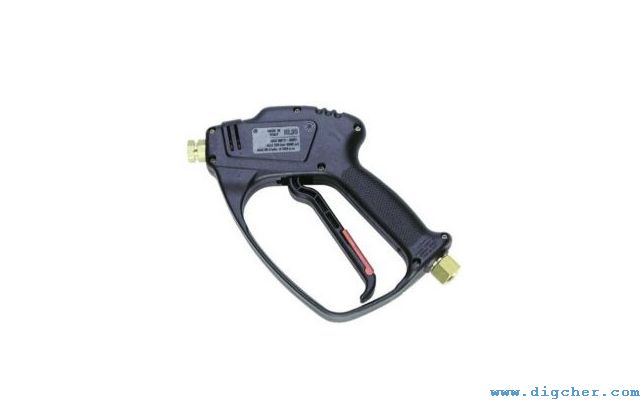 高壓水槍是高壓清洗機的重要組件之一,它主要負責清洗作業(yè)的開始與停止。高壓水槍通過高壓管路總成連接到高壓水泵的輸出端,是高壓清洗機的執(zhí)行兼控制系統(tǒng)。高壓水槍可以按排放壓力的控制閥形式做進一步定義,主要可分為兩種,溢流型和截流型。溢流型高壓水槍的工作原理是在扣動扳機時,槍上的溢流閥關閉,壓力得以迅速增大從而形成高壓水射流,當松開扳機時,槍上的溢流閥打開,水從溢流閥流出,從而釋放壓力。而截流型高壓水槍的工作原理則完全不同,扣動扳機時,壓力增大,當松開扳機時,高壓水仍保持在系統(tǒng)中,通過高壓水泵上的溢流閥流出或是循環(huán)利用。